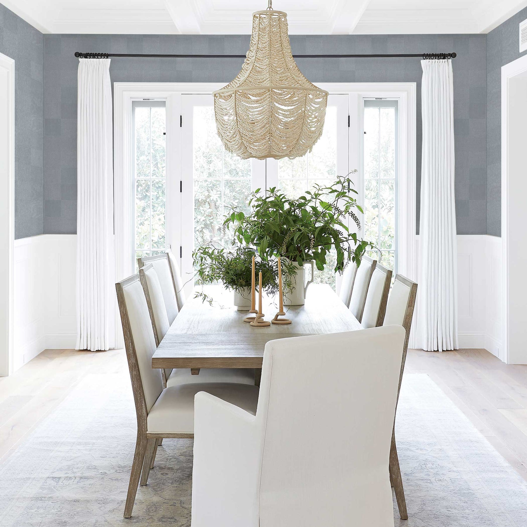 A fresh take on the classic checkerboard, our Textured Check Peel and Stick Wallpaper design from our exclusive collaboration with Pure Salt brings an understated pattern to the walls through a soft, woven texture reminiscent of European linen. Available in bone and slate colorways, its subtle grid offers a grounded, refined feel that works in dining rooms, mudrooms, or cozy breakfast nooks. The understated geometry adds visual interest without distraction, creating a calm, versatile backdrop that layers beautifully with natural materials and tonal textiles.